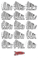 - Solid color interior with a contrasting outline in a progressive slanted font.