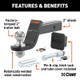- Fits trailer hitches with a 2" x 2" receiver tube opening